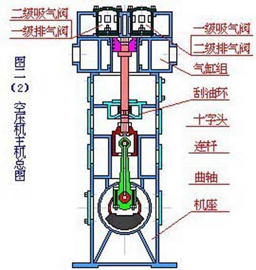活塞式空氣壓縮機(jī)的工作原理:活塞式空壓機(jī)在氣缸內(nèi)作往復(fù)運(yùn)動的活塞向右移動時,氣缸內(nèi)活塞左腔的壓力低于大氣壓力,吸氣閥開啟,外界空氣吸入缸內(nèi),這個過程稱為壓縮過程。當(dāng)缸內(nèi)壓力高于輸出空氣管道內(nèi)壓力后,排氣閥打開?;钊耐鶑?fù)運(yùn)動是由電動機(jī)帶動的曲柄滑塊機(jī)構(gòu)形成的。曲柄的旋運(yùn)動轉(zhuǎn)換為滑動--活塞的往復(fù)運(yùn)動。這種結(jié)構(gòu)的壓縮機(jī)在排氣過程結(jié)束時總有剩余容積存在。在下一次吸氣時,剩余容積內(nèi)的壓縮空氣會膨脹,從而減少了吸入的空氣量,降低了效率,增加了壓縮功。